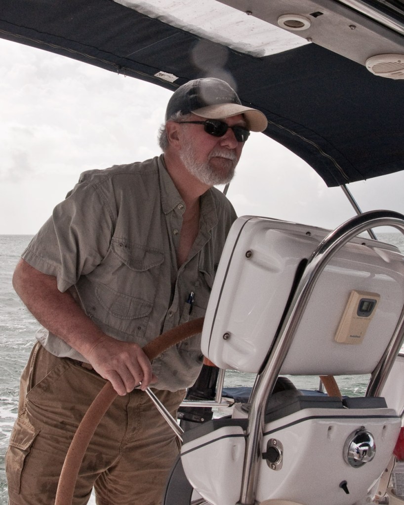 So, being responsible boat owners, we contacted the Coconut Grove Sailing Club and asked them to suggest a trained instructor who would be willing to coach us on our boat. They linked us up with Bruce Penrod, a super-experienced instructor and boat captain, who offered to provide several hours of customized lessons. Bruce, a retired school teacher, has made many long single-handed voyages on his Hunter Legend. Originally from Pennsylvania, he and his wife now live in Miami. He also happens to be a yacht broker.