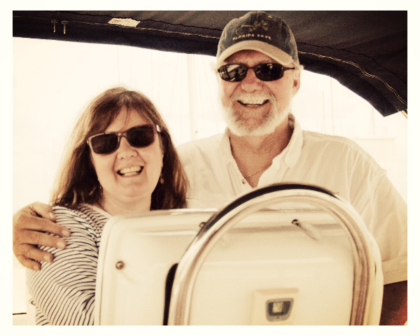 Congrats! You both look so happy. All the best on this first voyage aboard the new boat.
