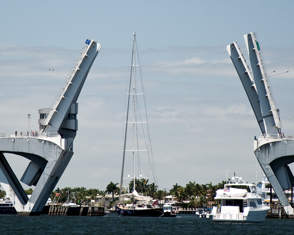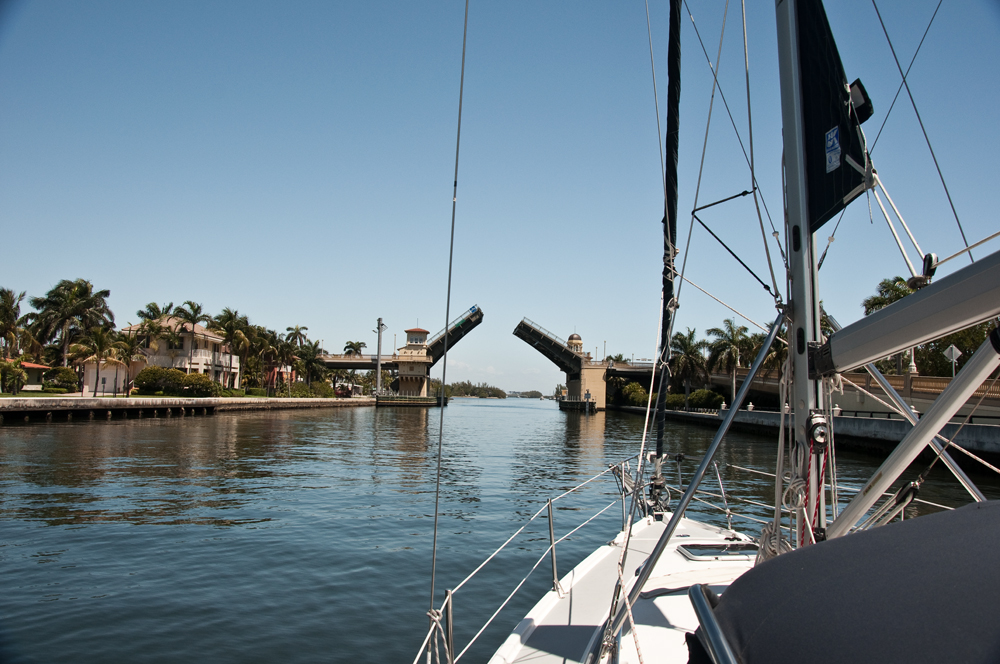 The voyage on the ICW between Miami and Fort Lauderdale is all about bridges. There are around 10 that you need to navigate. Some are fixed and 65 feet high, which easily accommodates our 55-foot mast, but most are low drawbridges or bascule bridges which have to open to let sailboats and other large boats go through. Since they typically open on a schedule, you have to pay attention to arriving at the bridge at the right time, otherwise you miss the opening and have to circle for a half an hour until the next one.