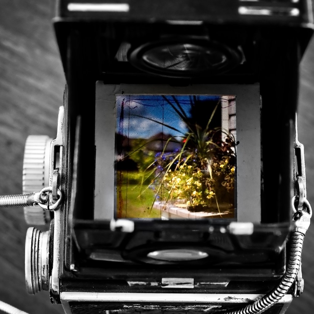 These photos were taken through the viewfinder of a vintage Rolleiflex twin lens reflex camera owned by my father, an enthusiastic photographer, who took many lovely shots with it. It is an iconic camera and I am now its proud custodian.
