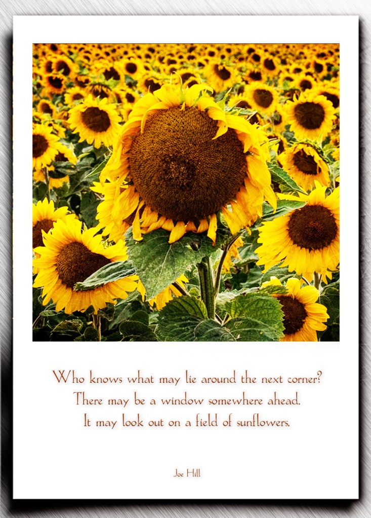 Who knows what may lie around the next corner? There may be a window somewhere ahead. It may look out on a field of sunflowers.