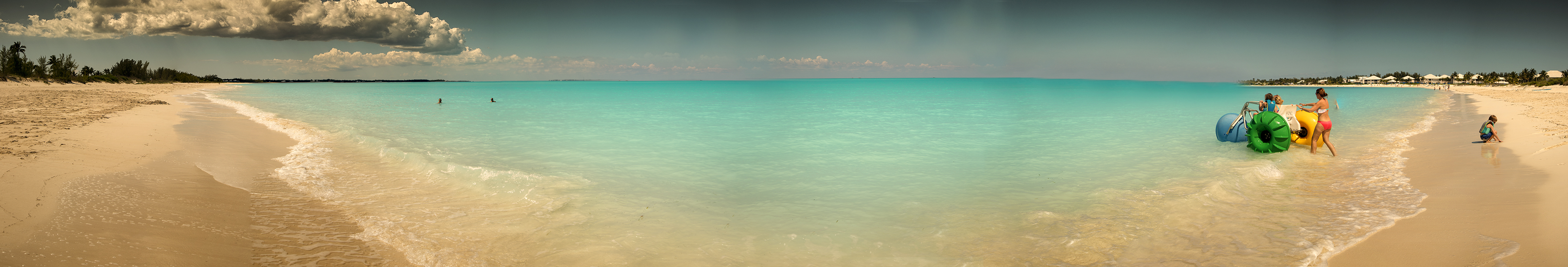 The circular beauty of Treasure Cay beach in the Bahamas called out for a panoramic view so I took a whole series of shots handheld and merged them in Photoshop. You’re supposed to use a tripod and all that but I didn’t bother and they still turned out pretty well.