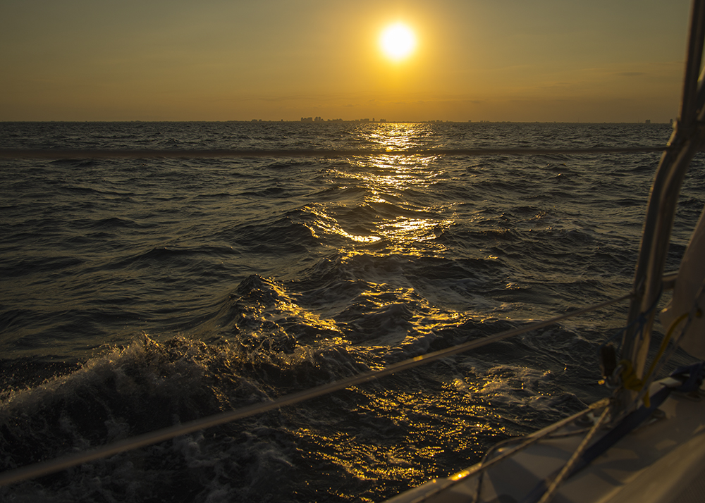 We decided to leave Florida at 5:30 pm on Monday afternoon. Since this was our first trip we wanted to see for ourselves that the weather reports that we had been glued to for days were actually correct.  As newbies, we wanted to be able to go out on the ocean in daylight, check out the weather a couple of miles offshore and still have time to come back to the anchorage by dusk if the seas were too choppy.