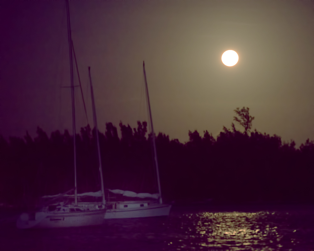At night it can be very difficult to see exactly how far away things are and sometimes what direction they are moving. We could also see Mike in his boat because of his Big Blipper radar reflector. We did not cruise really close together but we did stay in radio contact, and could usually see him on our radar. It was a beautiful moonlit night, waves were about 2 to 3 feet with light winds just as forecast. We were amazed how much we could see on the water in the moonlight.