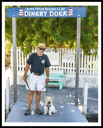 When we arrived here in Marsh Harbour, we anchored out in the harbour for a few days while waiting for a slip. Then when a slip became available in the marina, we moved in there. It’s romantic out there on the hook but a bit of a pain to dinghy Charles in in rough weather, schlep our water out and also run the generator every day to supply our electricity. In the slip we have lots of power, water, and Charles has easy access to land. We can also get four TV channels! As we’ve mentioned before the only real downside is poor Internet access. Other than that we are in heaven.