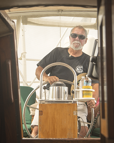 Mike has a 33-foot Alajuela and it is a great salty boat, which Mike has been singlehanding for many years. He is amazing to watch…his ease and calm come from all his experience and training as a licensed captain.