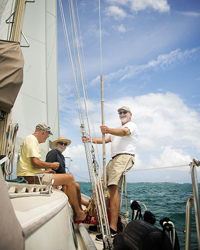 mike and crew sailing to guana